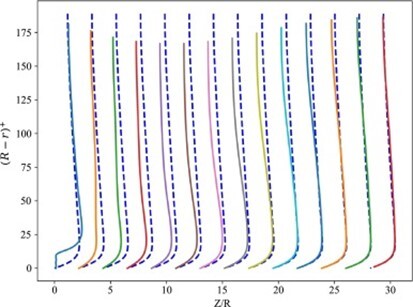Background: When simulating turbulent flows, the specification of the inlet boundary condition is a crucial step, to ensure quick transition to a fully developed, healthy turbulence. In the literature there are different options, such as tripping, recycling, roughness, or the specification of synthetic turbulence. In this thesis work, we would like to translate and potentially improve a specific method, the so-called synthetic eddy method (SEM, Poletto et al. 2016) to our new GPU-based simulation code Neko. The figure shows how turbulence statistics develop for a turbulent pipe flow, as a function of downstream position. This is what we would like to also have in Neko, both using CPUs and GPUs.